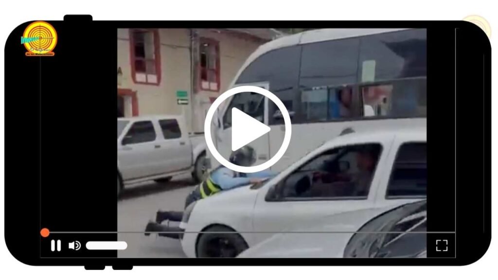 En las imágenes se ve cómo el agente se agarra del capó mientras el auto avanza a velocidad peligrosa. Un compañero corre detrás, impotente, mientras el conductor ignora el riesgo de un h0micid1o.